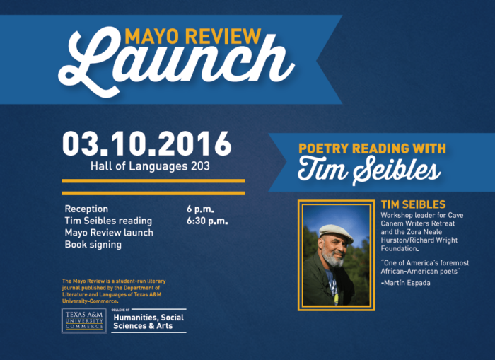 The Mayo Review will welcome Tim Seibles as a guest reader on Thursday March 10 at 6:30 p.m. with a reception beginning at 6 p.m. in the Hall of Languages room 203.