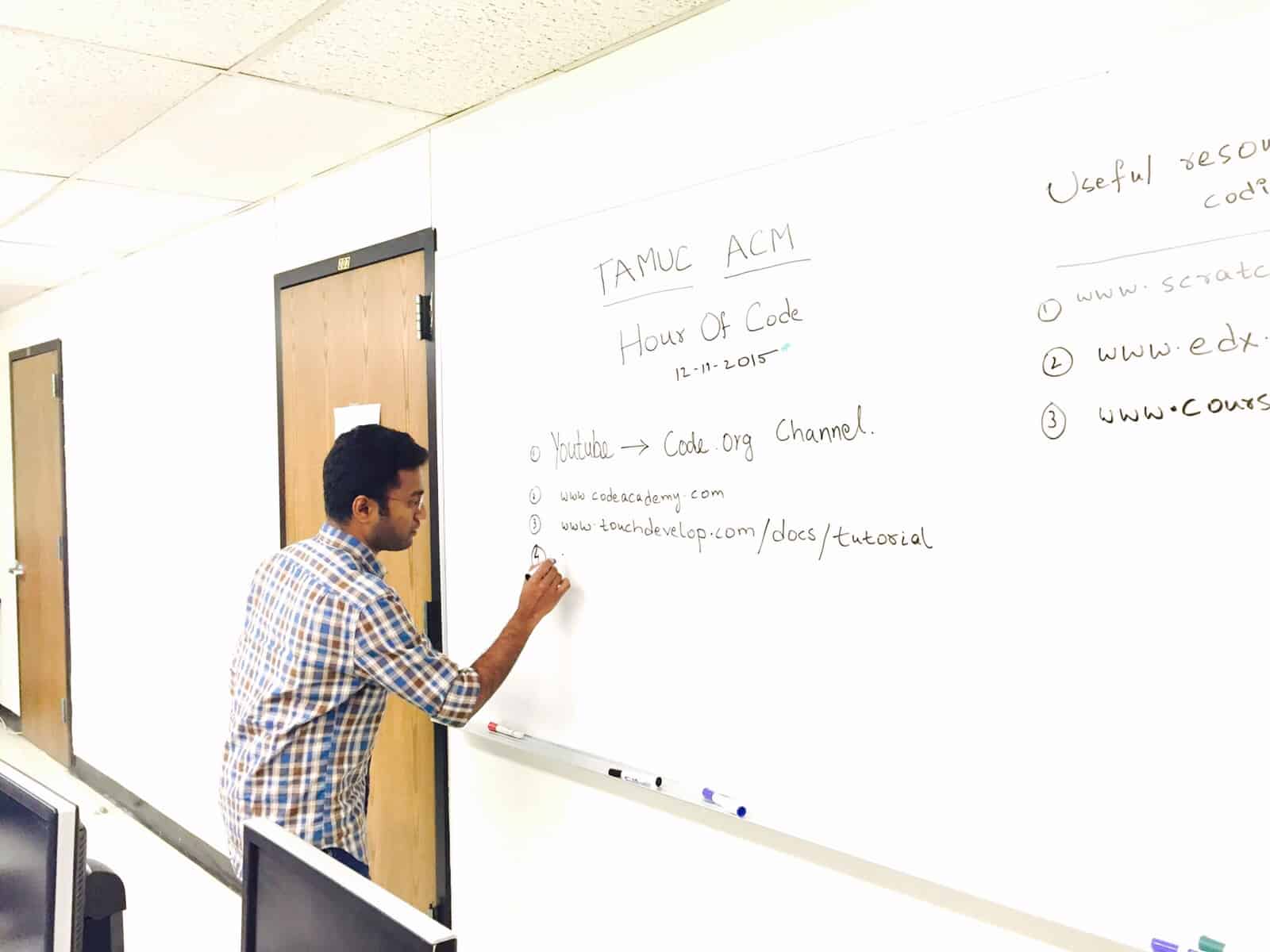 The Texas A&M University-Commerce Association for Computing Machinery (ACM) local student chapter recently held an “Hour of Code” event where they taught students how to code under the supervision of Assistant Professor of Computer Science Dr. Unal “Zak” Sakoglu.
