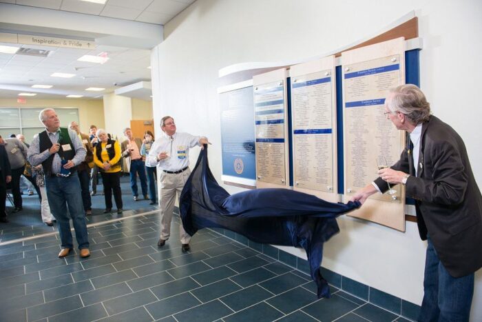 A Texas A&M University-Commerce Giving Society wall was unveiled in the Rayburn Student Center during the inaugural Lucky's Thank You Celebration, a biennial appreciation event for donors.