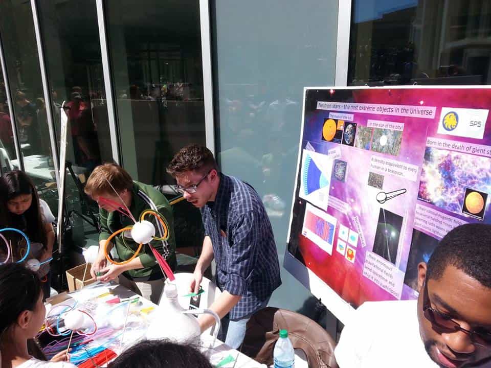 “The educational expo was a great opportunity to showcase our SPS chapter and generate interest in both science and our school,” said Sara Cantu, vice-president of the Society of Physics Students. “It was great watching faces light up at the superconductivity experiment and how tickled people were, adults and children alike, over the model neutron stars. Both events provided a great opening for teaching about a subject that most wouldn't take the time to learn about.”