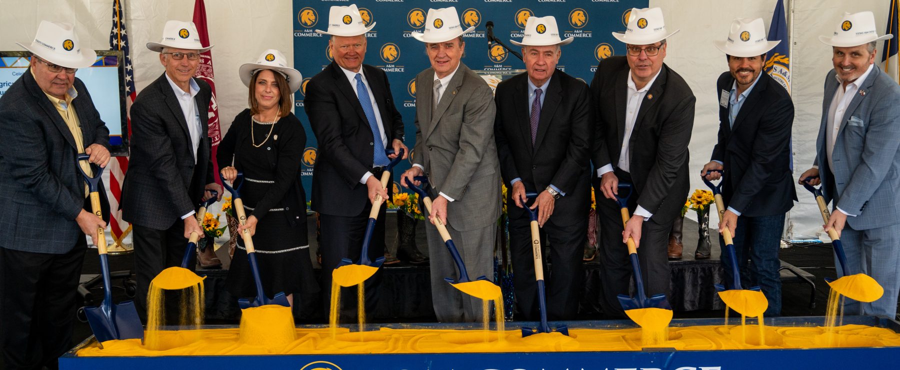 Texas A&M University-Commerce conducted a groundbreaking ceremony on Monday, March 18 to begin construction of a new Agricultural Multipurpose Education & Training Center and a gamebird research center, both located on State Highway 24 south of Commerce.
