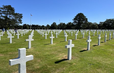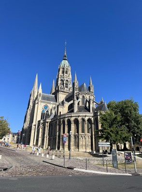 This trip was incredibly special to me, and I have a lot of favorite memories from it. One of the best ones was from our day trip to Bayeux/Normandy, France, when we went to see Omaha Beach and the German and American Cemeteries. It was our last day in France, and everyone had mixed emotions. When we boarded the bus, we were tired and sad about leaving, and we were dreading a three-hour bus ride. However, we finally arrived in Bayeux, a town that genuinely felt like a storybook village, and everyone was suddenly excited again. There was a cathedral to explore, street vendors to visit, bakeries to try, and big, beautiful trees to sit under. After Bayeux, we headed to Omaha Beach where we sat and listened to testimonies of the soldiers from D-Day. It was such a powerful moment to listen to the events while sitting on the exact beach where it happened. After some solemn moments at the memorial, we got to explore the beach and spend some carefree time walking in the sand and trying the goodies we had bought from the bakery. Overall, this day was a beautiful combination of solemn, powerful moments mixed with joyful, carefree moments shared with friends.